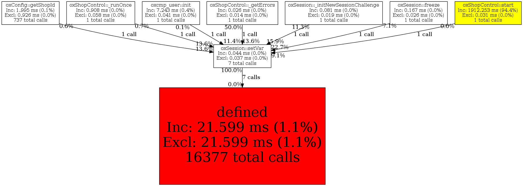 | oxSession::setVar | 7 | 13.2% | 44 | 0.0% | 0 | 0.0% | 10,600 | 0.0% | 6,816 | 0.0% |