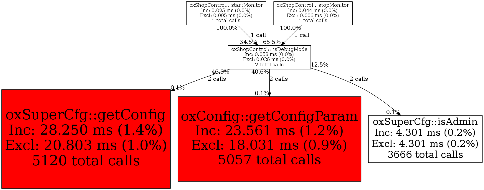 | oxShopControl::_isDebugMode | 2 | 4.3% | 58 | 0.0% | 0 | 0.0% | 6,984 | 0.0% | 5,624 | 0.0% |