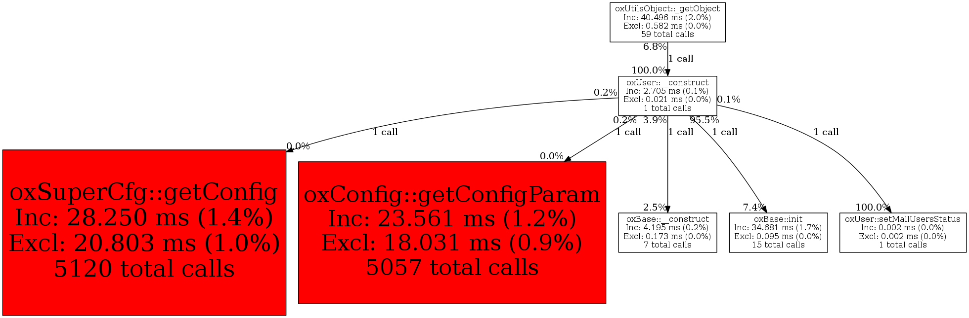 | oxUser::__construct | 1 | 2.2% | 2,705 | 0.1% | 0 | 0.0% | 41,560 | 0.2% | 48,504 | 0.2% |