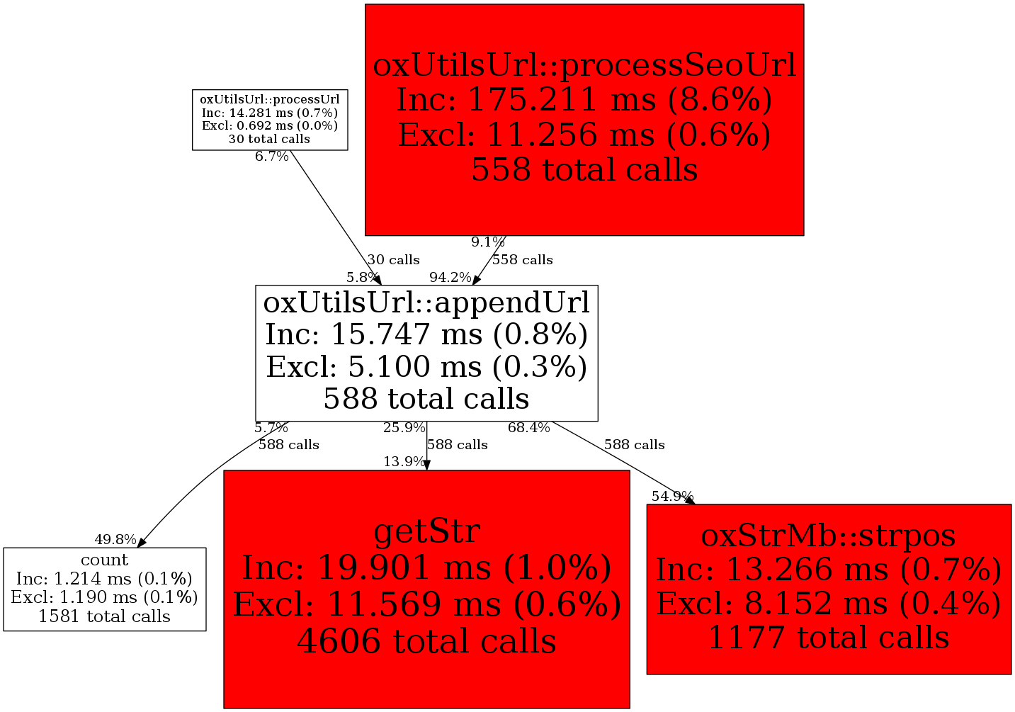 | oxUtilsUrl::processUrl | 30 | 5.1% | 908 | 5.8% | 4,001 | 25.0% | 14,424 | 12.5% | 10,352 | 90.6% |