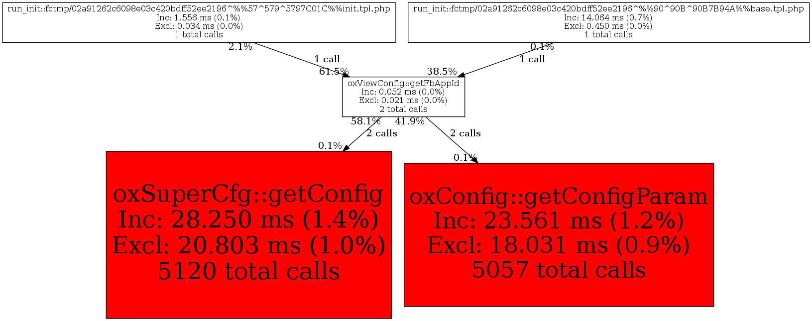 | oxViewConfig::getFbAppId | 2 | 4.4% | 52 | 0.0% | 0 | 0.0% | 5,384 | 0.0% | 0 | 0.0% |