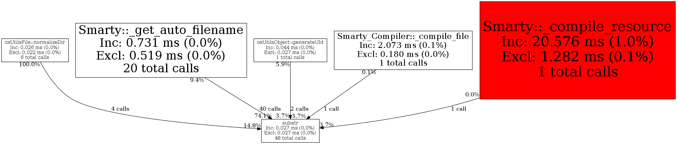 | Smarty::_compile_resource | 1 | 2.1% | 1 | 3.7% | 0 | N/A% | 1,272 | 15.2% | 0 | 0.0% |