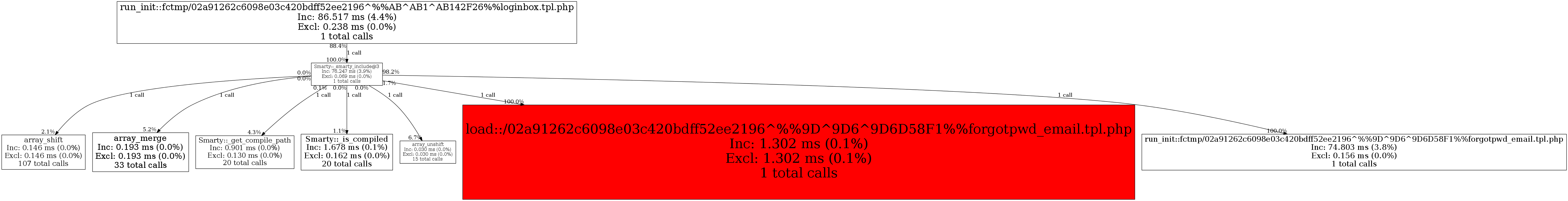 | Smarty::_get_compile_path | 1 | 14.3% | 39 | 0.1% | 0 | 0.0% | 1,352 | 0.2% | 0 | 0.0% |
