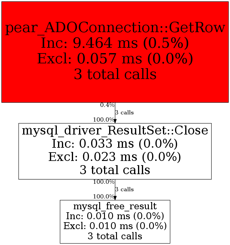 | pear_ADOConnection::GetRow | 3 | 100.0% | 33 | 100.0% | 0 | N/A% | -3,312 | -100.0% | 1,296 | 100.0% |