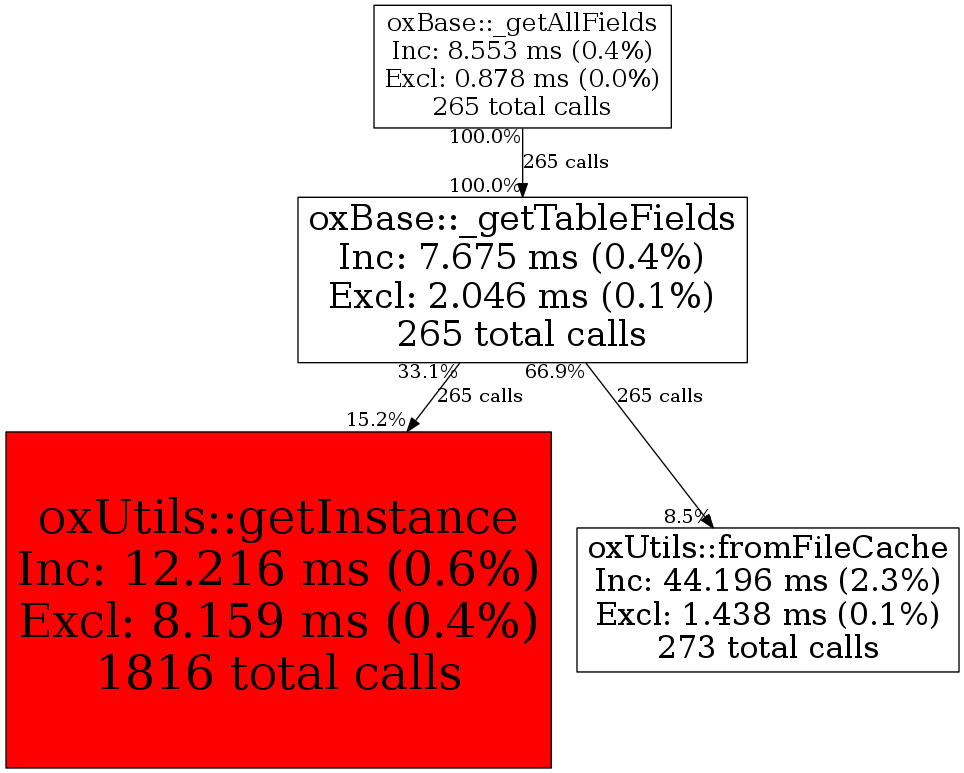 | oxBase::_getTableFields | 265 | 32.0% | 7,675 | 0.4% | 4,000 | 0.4% | 14,000 | 0.1% | 106,120 | 0.4% |