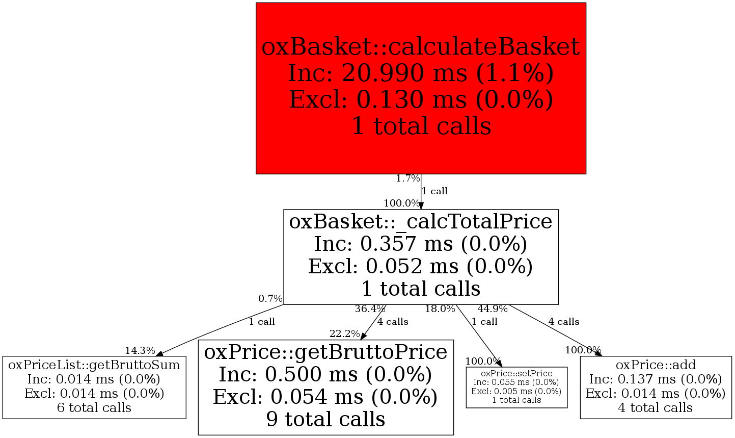 | oxBasket::_calcTotalPrice | 1 | 2.3% | 357 | 0.0% | 4,001 | 0.4% | 14,944 | 0.1% | 14,544 | 0.1% |