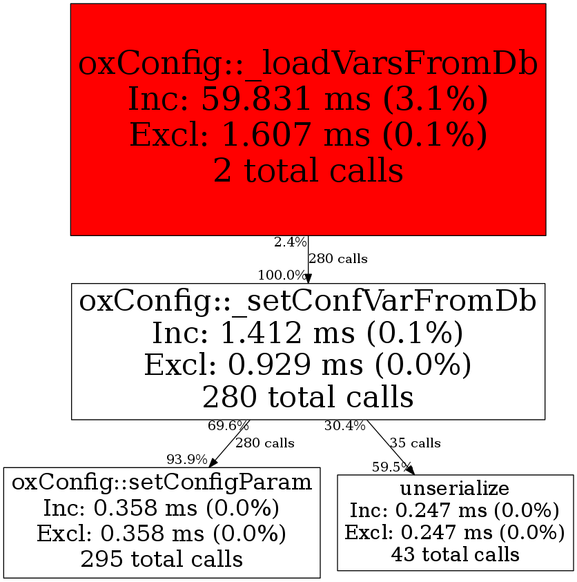 | oxConfig::_setConfVarFromDb | 280 | 44.6% | 1,412 | 0.1% | 4,000 | 0.4% | 133,024 | 0.5% | 183,208 | 0.7% |