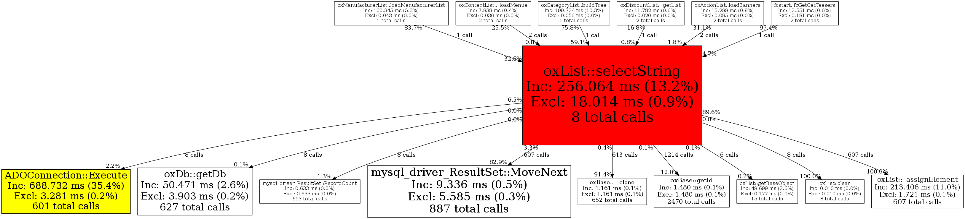| oxList::selectString | 8 | 0.3% | 256,064 | 13.2% | 224,014 | 24.3% | 11,435,856 | 46.3% | 11,459,328 | 45.6% |