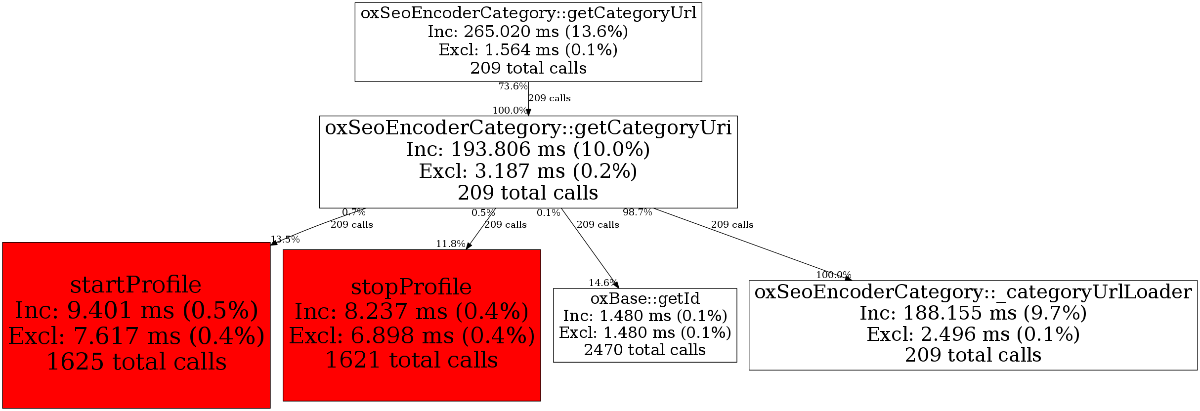 | oxSeoEncoderCategory::getCategoryUri | 209 | 19.4% | 193,806 | 10.0% | 96,004 | 10.4% | 110,464 | 0.4% | 520,216 | 2.1% |