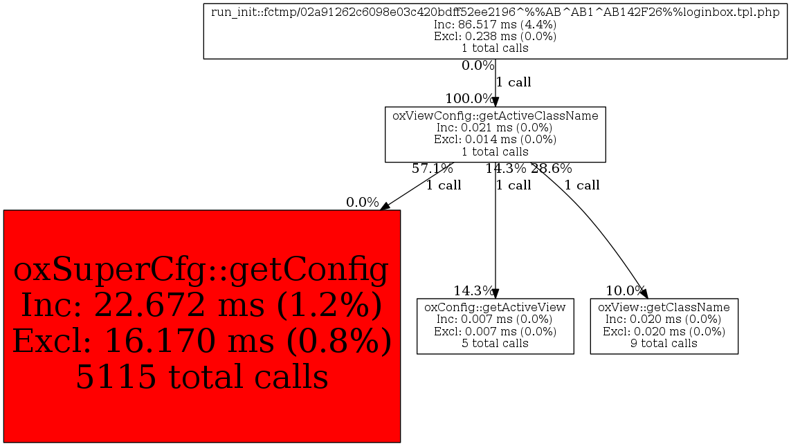 | oxConfig::getActiveView | 1 | 33.3% | 1 | 4.8% | 0 | N/A% | 1,120 | 19.4% | 0 | N/A% |