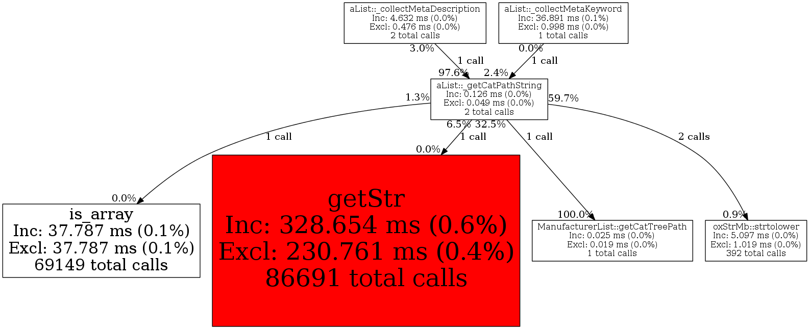 | aList::_getCatPathString | 2 | 15.4% | 126 | 0.0% | 0 | 0.0% | 13,280 | 0.0% | 0 | 0.0% |