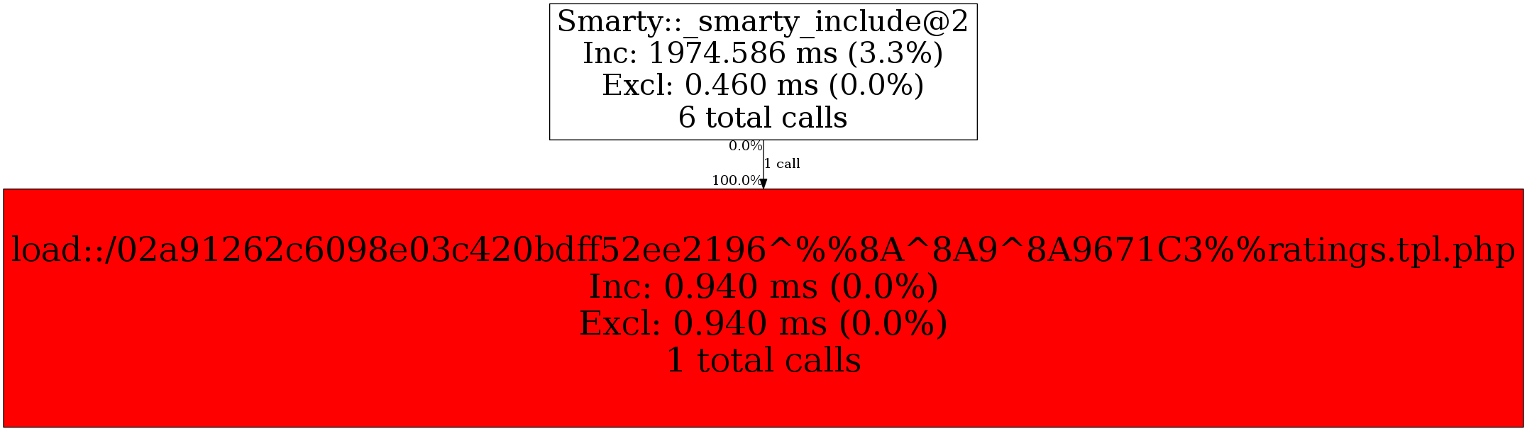 | Smarty::_smarty_include@2 | 1 | 100.0% | 940 | 100.0% | 0 | N/A% | 3,344 | 100.0% | 0 | N/A% |