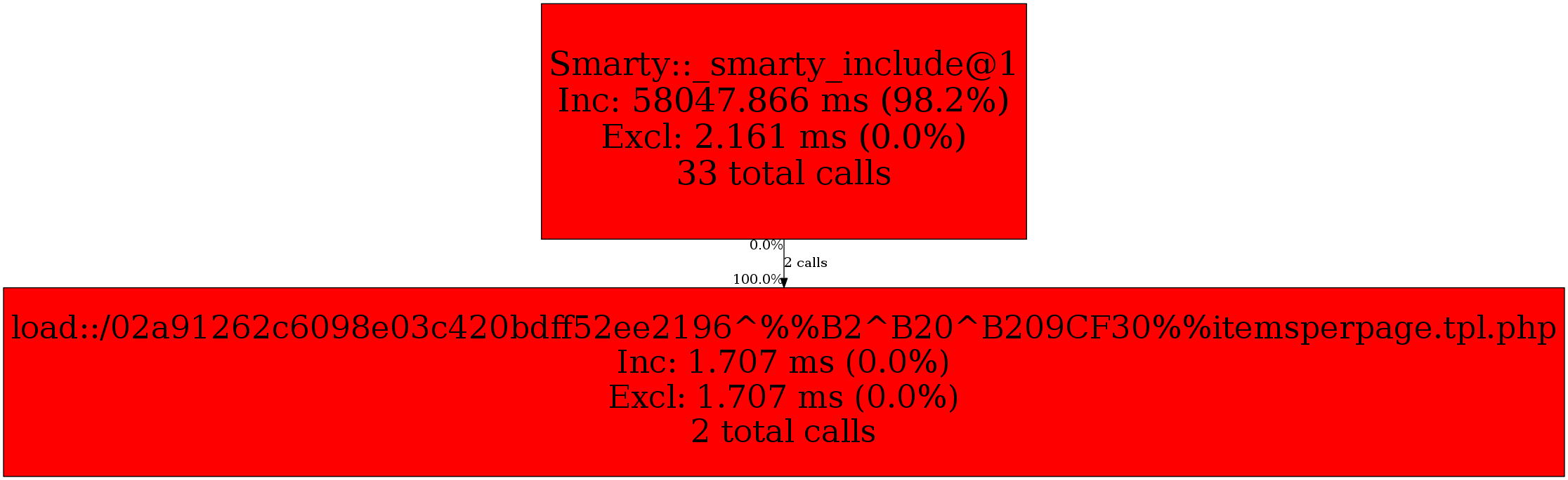 | Smarty::_smarty_include@1 | 2 | 100.0% | 1,707 | 100.0% | 0 | N/A% | 4,920 | 100.0% | 4,536 | 100.0% |
