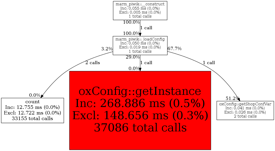 | marm_piwik::_loadConfig | 1 | 9.1% | 50 | 0.0% | 0 | 0.0% | 5,744 | 0.0% | 0 | 0.0% |