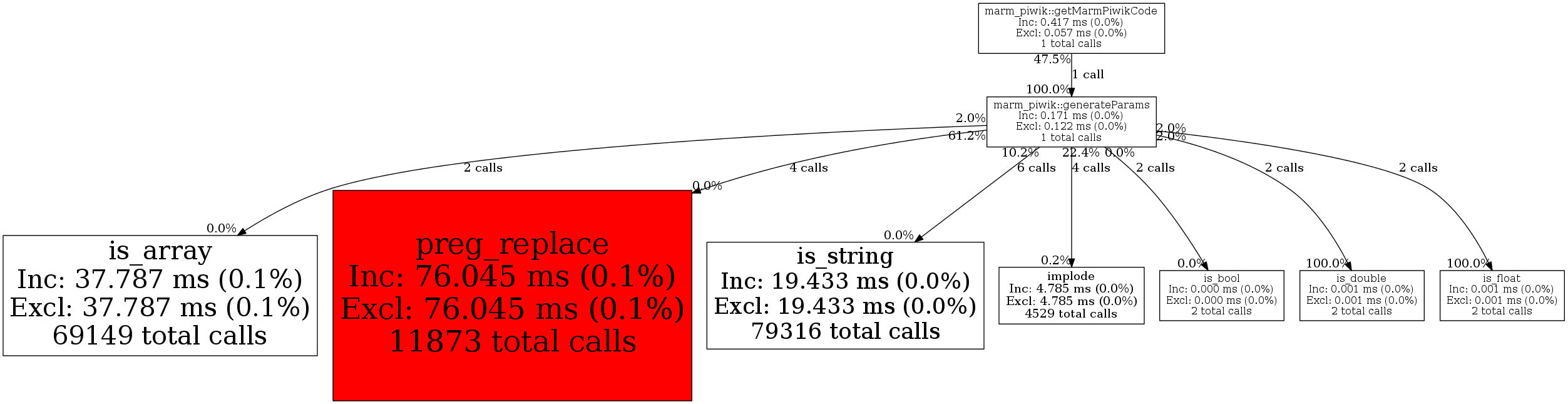 | marm_piwik::generateParams | 1 | 3.4% | 171 | 0.0% | 0 | 0.0% | 12,080 | 0.0% | 0 | 0.0% |