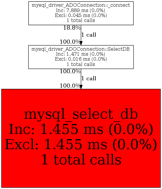 | mysql_driver_ADOConnection::_connect | 1 | 100.0% | 1,471 | 100.0% | 0 | N/A% | 2,760 | 100.0% | 936 | 100.0% |