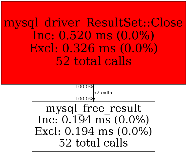 | mysql_driver_ResultSet::Close | 52 | 100.0% | 194 | 100.0% | 0 | N/A% | -88,128 | -100.0% | 0 | N/A% |