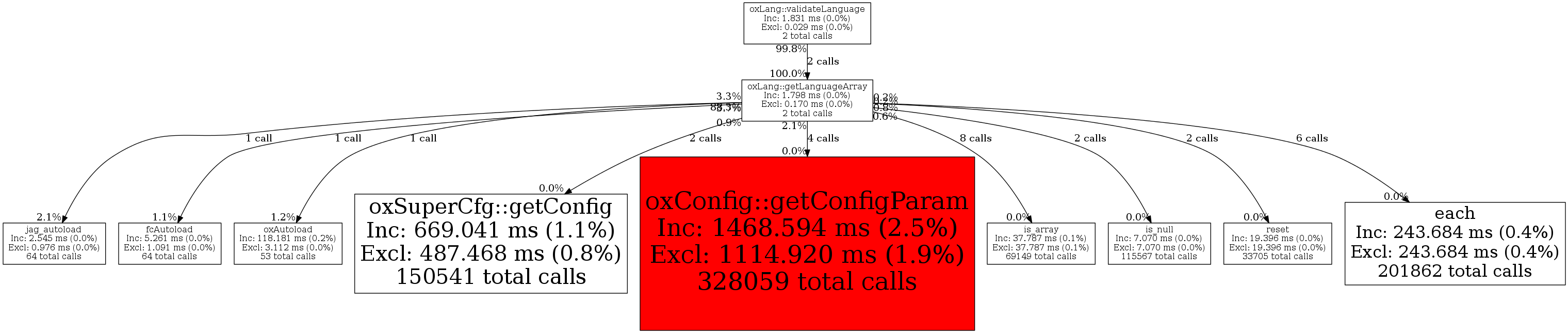 | oxLang::getLanguageArray | 2 | 5.7% | 1,798 | 0.0% | 0 | 0.0% | 23,664 | 0.1% | 25,312 | 0.0% |