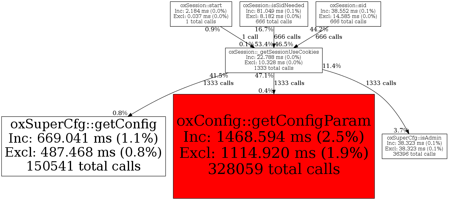 | oxSession::start | 1 | 0.1% | 20 | 0.1% | 0 | 0.0% | 5,784 | 5.0% | 3,584 | 60.0% |