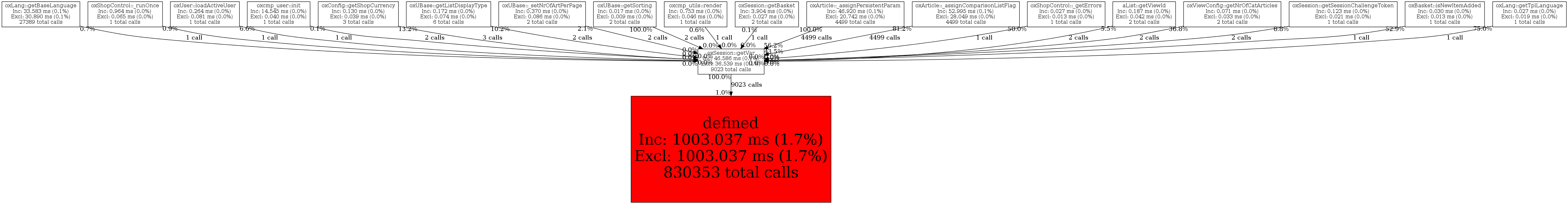 | oxSession::getVar | 9,023 | 50.0% | 46,586 | 0.1% | 84,005 | 0.3% | 746,528 | 1.7% | 13,992 | 0.0% |