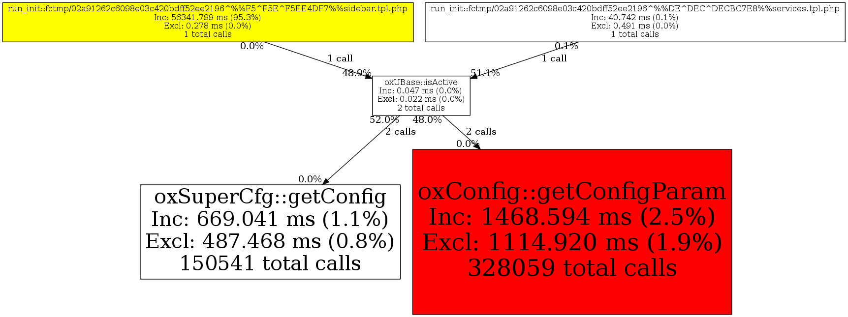 | oxConfig::getConfigParam | 2 | 50.0% | 12 | 25.5% | 0 | N/A% | 1,160 | 20.2% | 0 | N/A% |