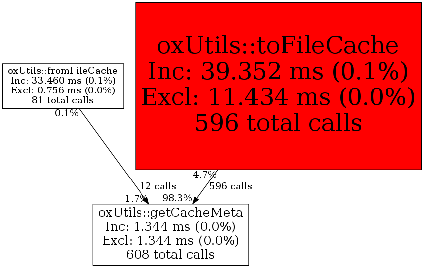 | oxUtils::fromFileCache | 12 | 2.0% | 23 | 1.7% | 0 | N/A% | 2,560 | 4.7% | 1,840 | 64.4% |