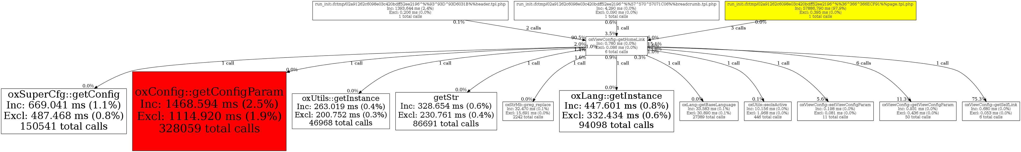 | oxViewConfig::getHomeLink | 6 | 21.4% | 780 | 0.0% | 0 | 0.0% | 27,872 | 0.1% | 10,496 | 0.0% |