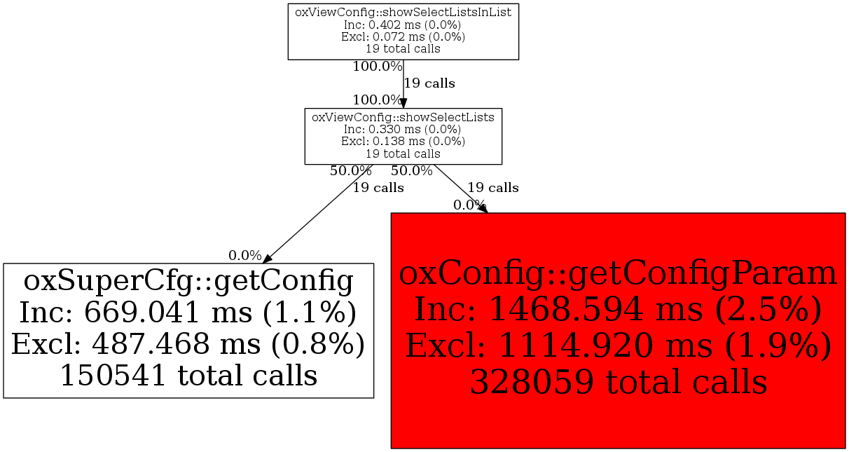 | oxViewConfig::showSelectLists | 19 | 30.2% | 330 | 0.0% | 0 | 0.0% | 5,704 | 0.0% | 3,536 | 0.0% |