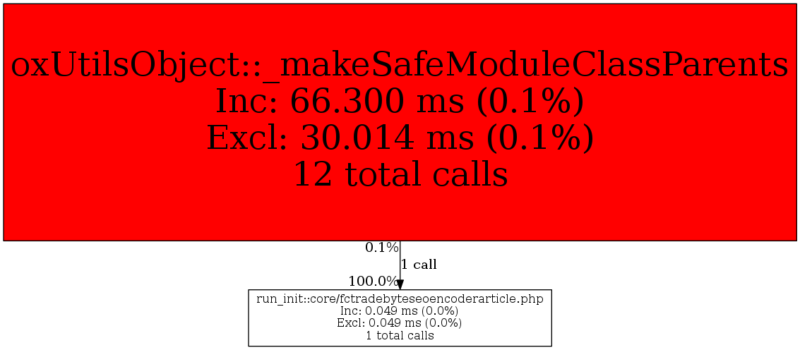 | oxUtilsObject::_makeSafeModuleClassParents | 1 | 100.0% | 49 | 100.0% | 0 | N/A% | 42,704 | 100.0% | 27,784 | 100.0% |