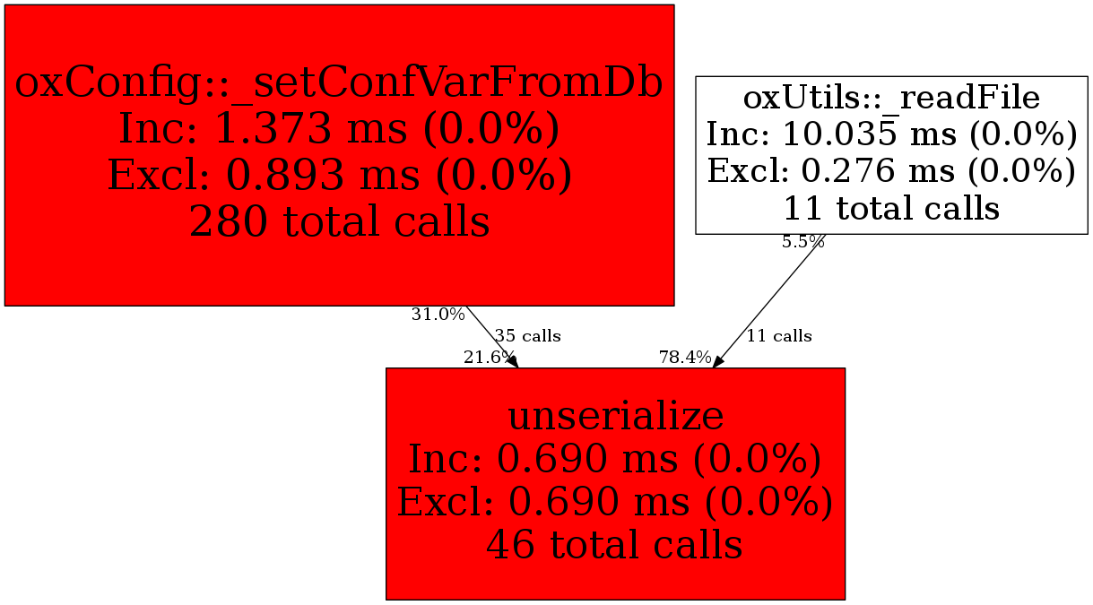 | oxConfig::_setConfVarFromDb | 35 | 76.1% | 149 | 21.6% | 0 | N/A% | 83,640 | 21.8% | 164,808 | 43.2% |