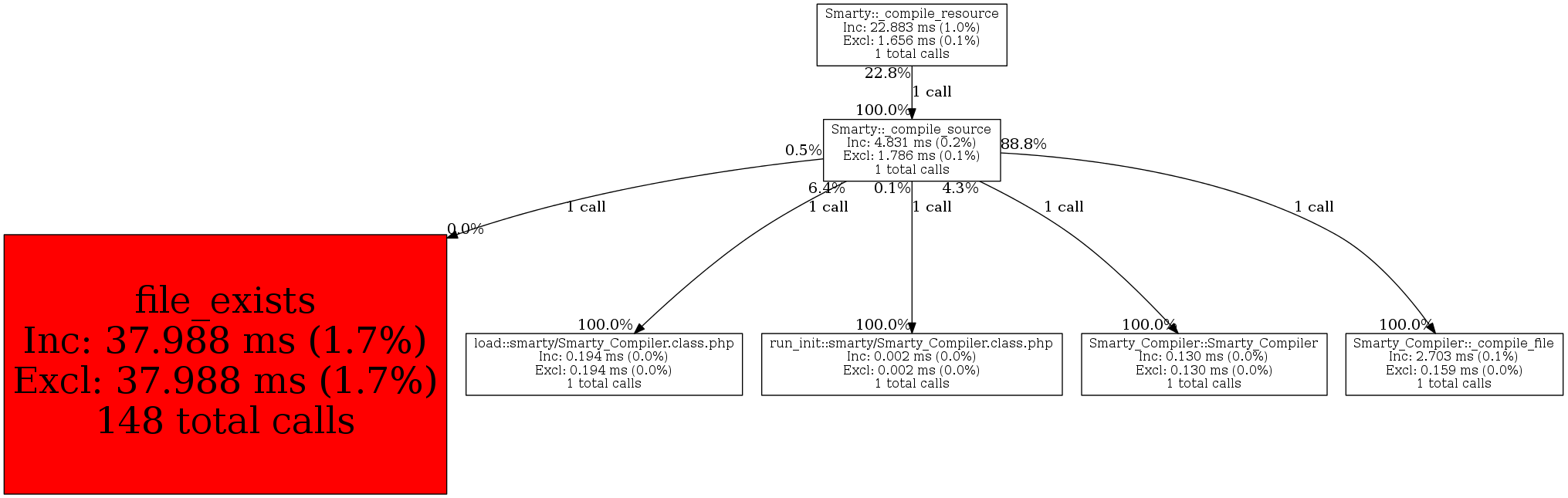 Smarty::_compile_source1 8.3% 4,831 0.2% 0 0.0% 262,304 1.2% 207,944 0.9%