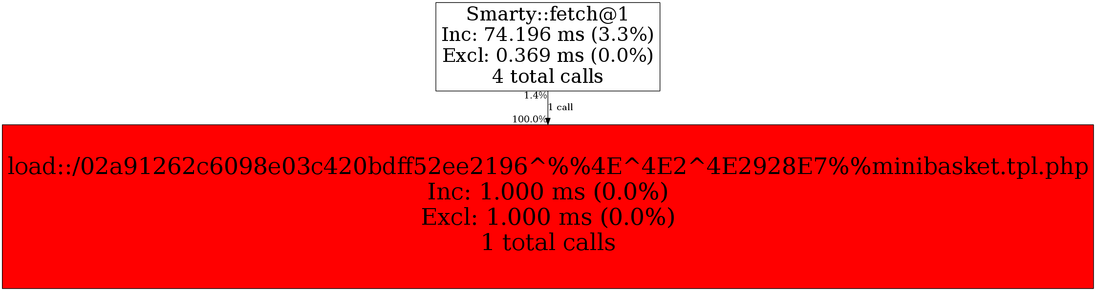 | Smarty::fetch@1 | 1 | 100.0% | 1,000 | 100.0% | 0 | N/A% | 3,328 | 100.0% | 4,520 | 100.0% |