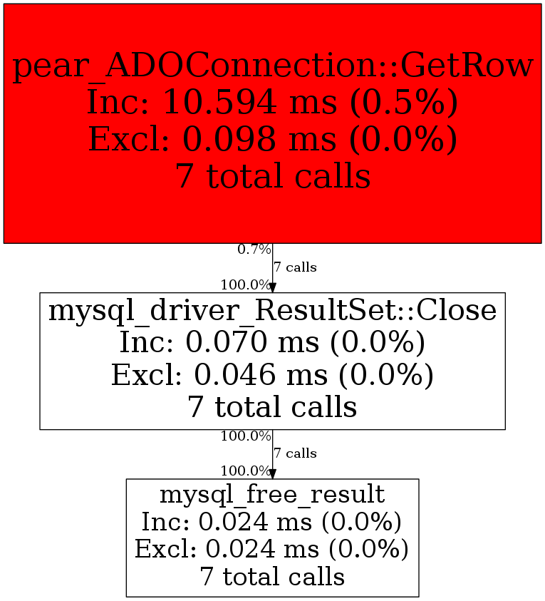 | pear_ADOConnection::GetRow | 7 | 100.0% | 70 | 100.0% | 0 | N/A% | -10,560 | -100.0% | 1,296 | 100.0% |