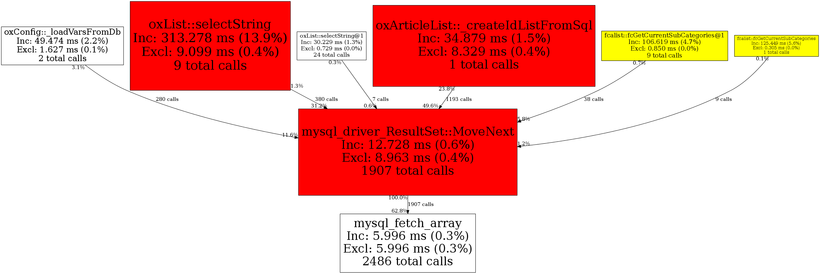 | fcalist::fcGetCurrentSubCategories | 9 | 0.5% | 159 | 1.2% | 0 | 0.0% | 21,792 | 4.0% | 0 | 0.0% |