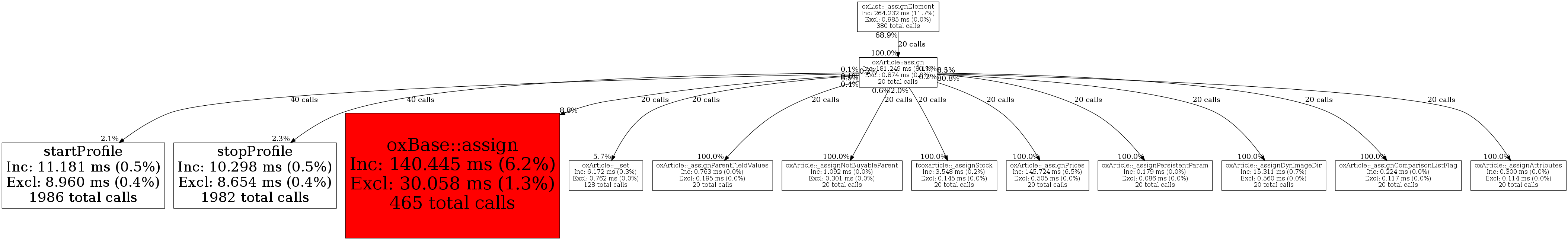 | oxBase::assign | 20 | 7.1% | 12,411 | 6.8% | 16,001 | 18.2% | 301,256 | 16.0% | 307,488 | 15.3% |