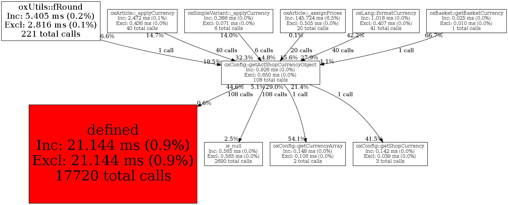 | oxConfig::getShopCurrency | 1 | 0.5% | 59 | 6.4% | 0 | N/A% | 1,200 | 7.9% | 1,360 | 9.6% |