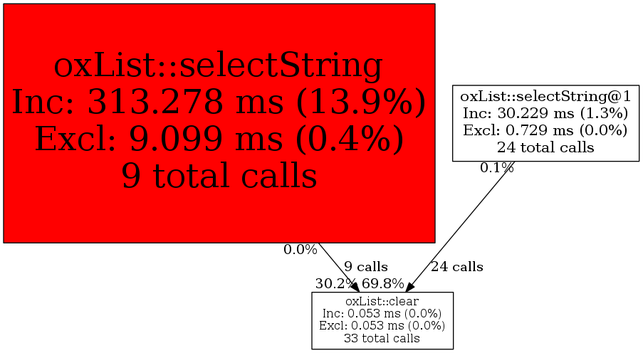 | oxList::selectString | 9 | 27.3% | 16 | 30.2% | 0 | N/A% | 3,904 | 31.2% | 1,360 | 52.1% |