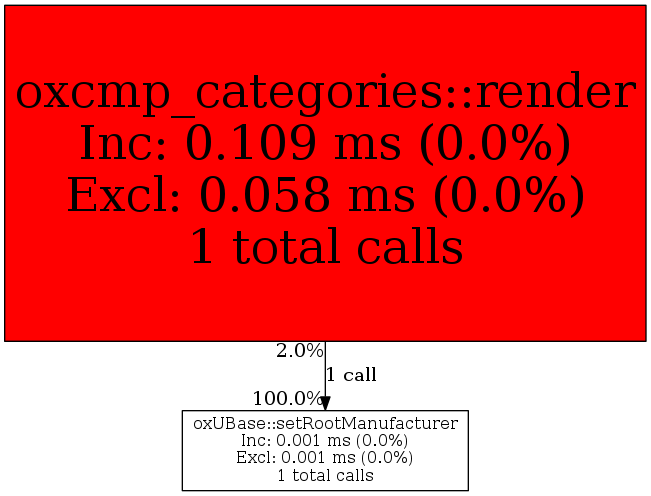 | oxcmp_categories::render | 1 | 100.0% | 1 | 100.0% | 0 | N/A% | 1,112 | 100.0% | 992 | 100.0% |