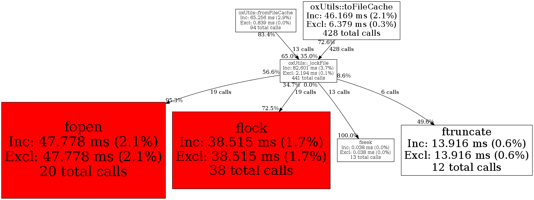 | oxUtils::_lockFile | 441 | 87.5% | 82,601 | 3.7% | 0 | 0.0% | 77,976 | 0.4% | 21,136 | 0.1% |