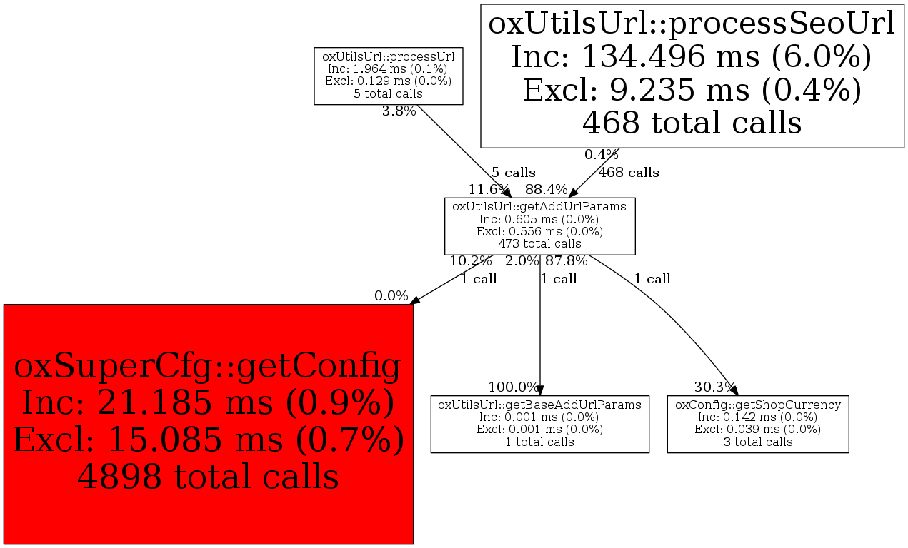 | oxUtilsUrl::processUrl | 5 | 1.1% | 70 | 11.6% | 0 | 0.0% | 9,064 | 89.1% | 5,752 | 84.8% |