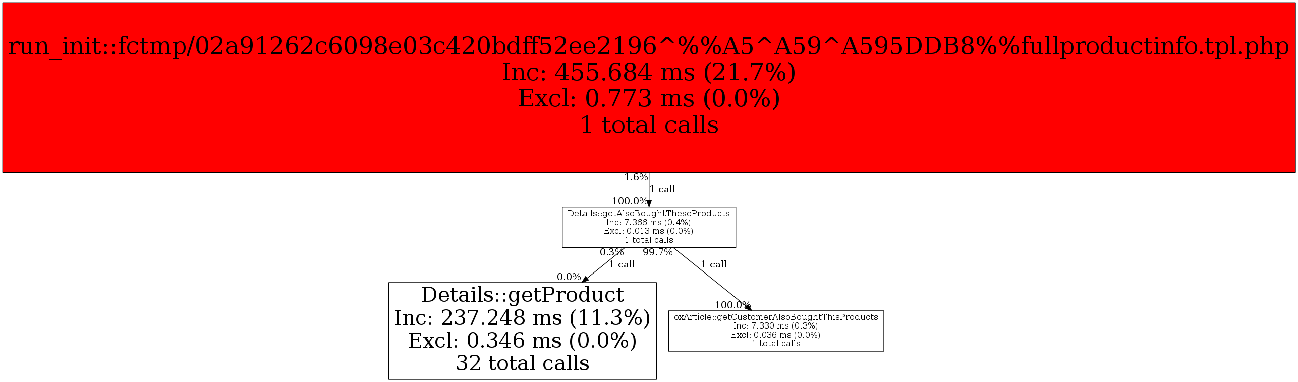 | Details::getAlsoBoughtTheseProducts | 1 | 11.1% | 7,366 | 0.4% | 0 | 0.0% | 34,672 | 0.2% | 0 | 0.0% |