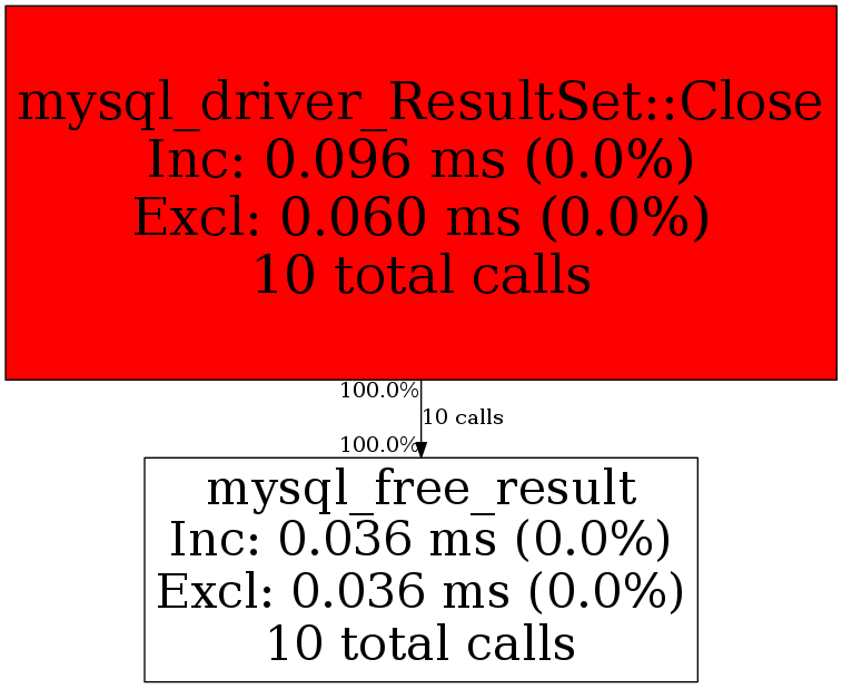 | mysql_driver_ResultSet::Close | 10 | 100.0% | 36 | 100.0% | 0 | N/A% | -17,448 | -100.0% | 688 | 100.0% |