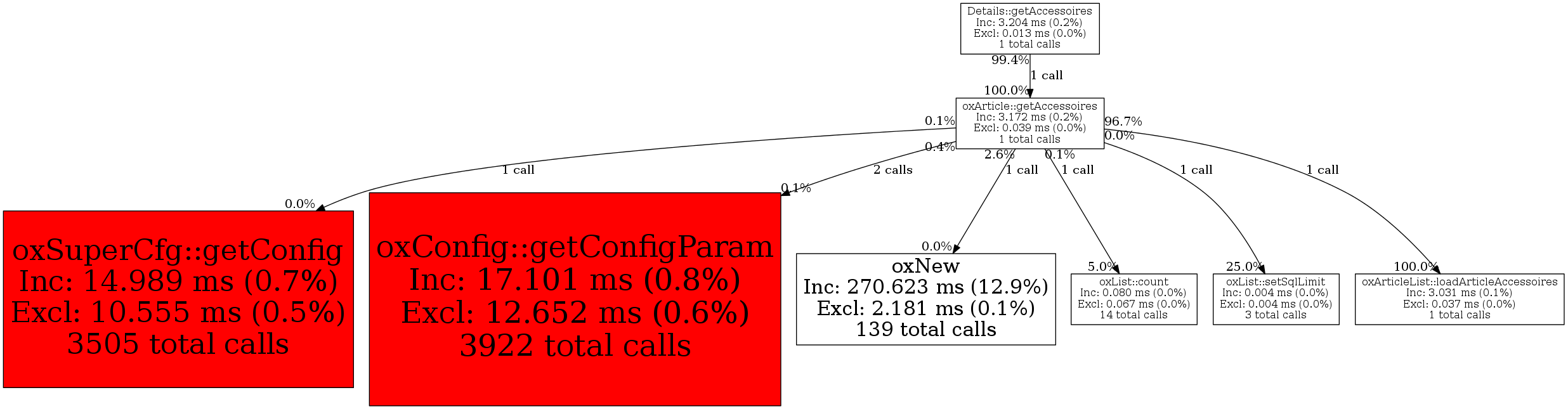 | oxArticle::getAccessoires | 1 | 7.1% | 3,172 | 0.2% | 0 | 0.0% | 22,688 | 0.1% | 28,032 | 0.1% |