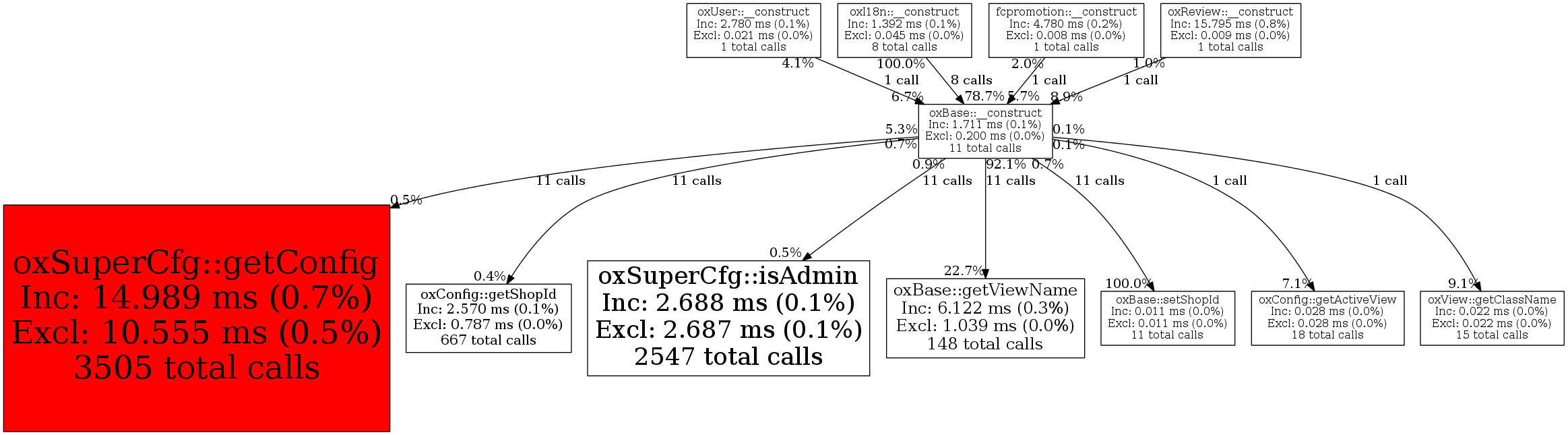 | oxSuperCfg::getConfig | 11 | 19.3% | 80 | 4.7% | 0 | N/A% | 1,984 | 5.2% | 1,472 | 1.6% |