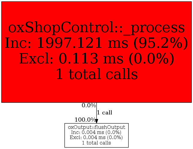 | oxShopControl::_process | 1 | 100.0% | 4 | 100.0% | 0 | N/A% | 1,104 | 100.0% | 0 | N/A% |