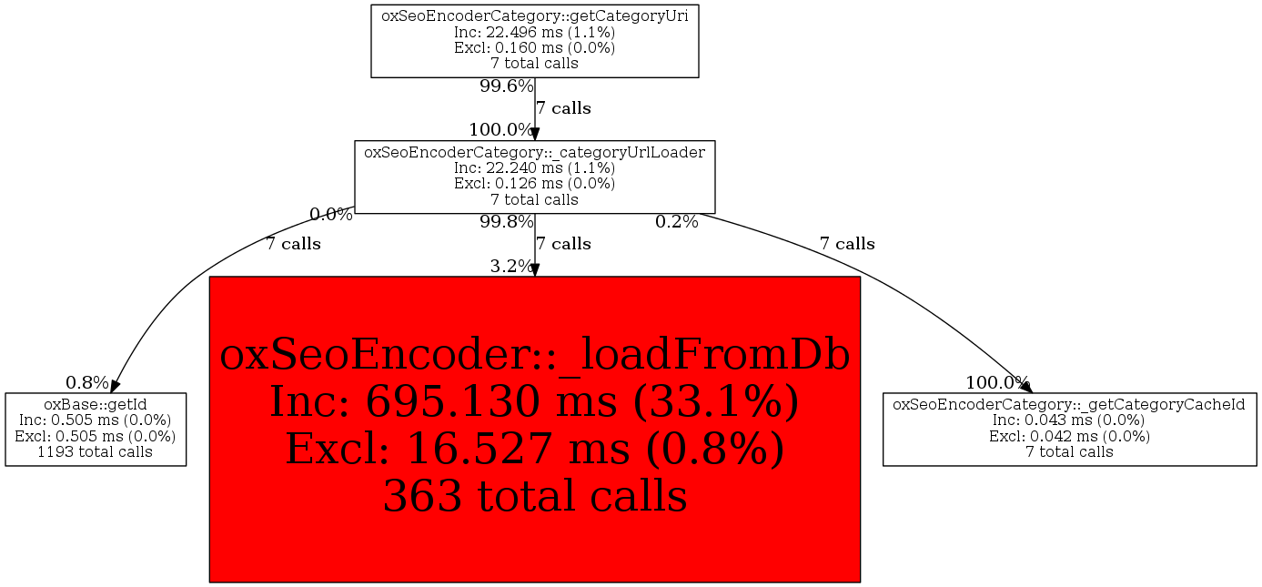 | oxSeoEncoderCategory::_getCategoryCacheId | 7 | 33.3% | 43 | 0.2% | 0 | 0.0% | 3,688 | 45.6% | 0 | N/A% |