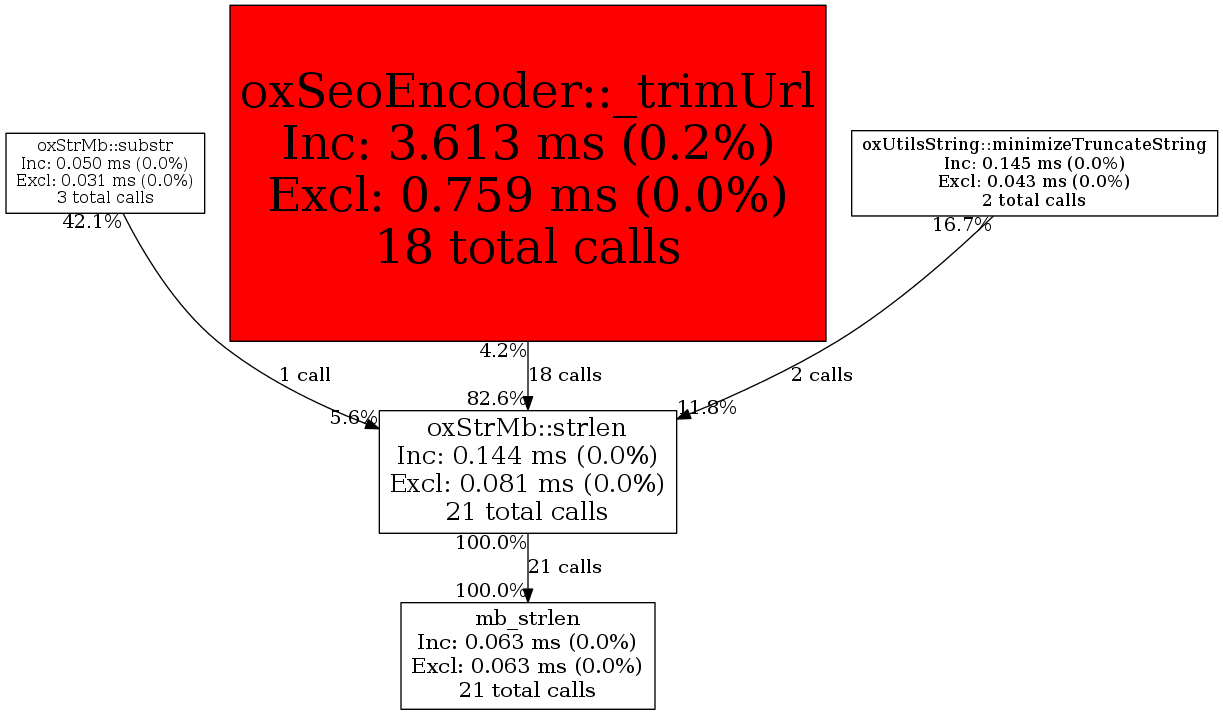 | oxSeoEncoder::_trimUrl | 18 | 85.7% | 119 | 82.6% | 0 | N/A% | 2,536 | 39.1% | 0 | 0.0% |