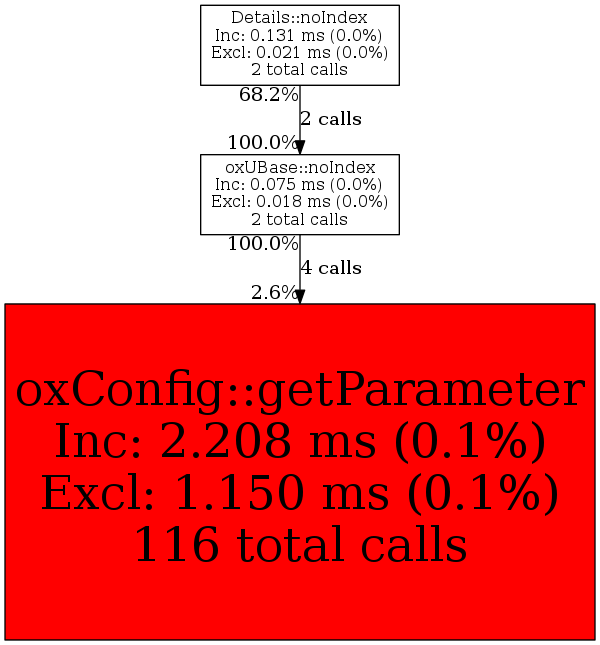 | oxConfig::getParameter | 4 | 100.0% | 57 | 76.0% | 0 | N/A% | 1,424 | 54.4% | 0 | N/A% |