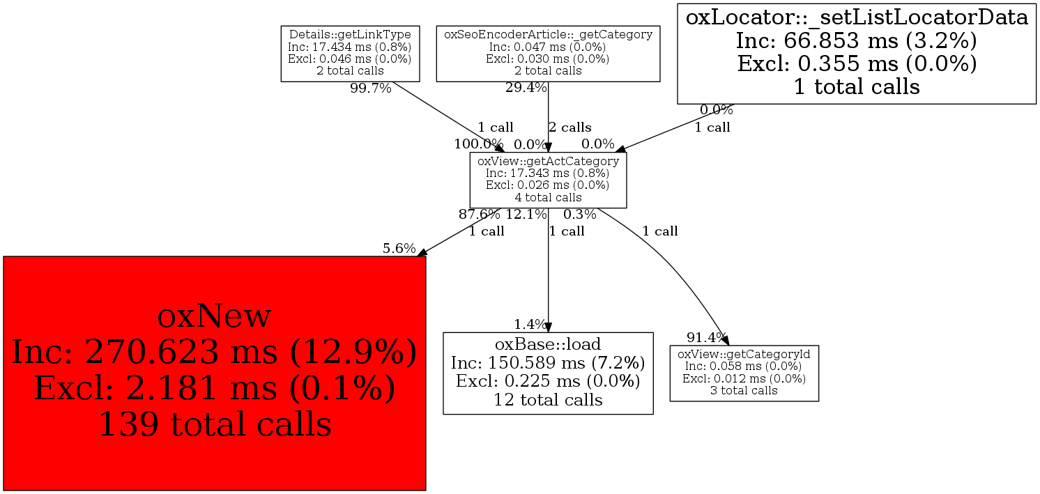 | oxView::getActCategory | 4 | 30.8% | 17,343 | 0.8% | 4,001 | 0.6% | 500,408 | 2.2% | 463,784 | 2.1% |