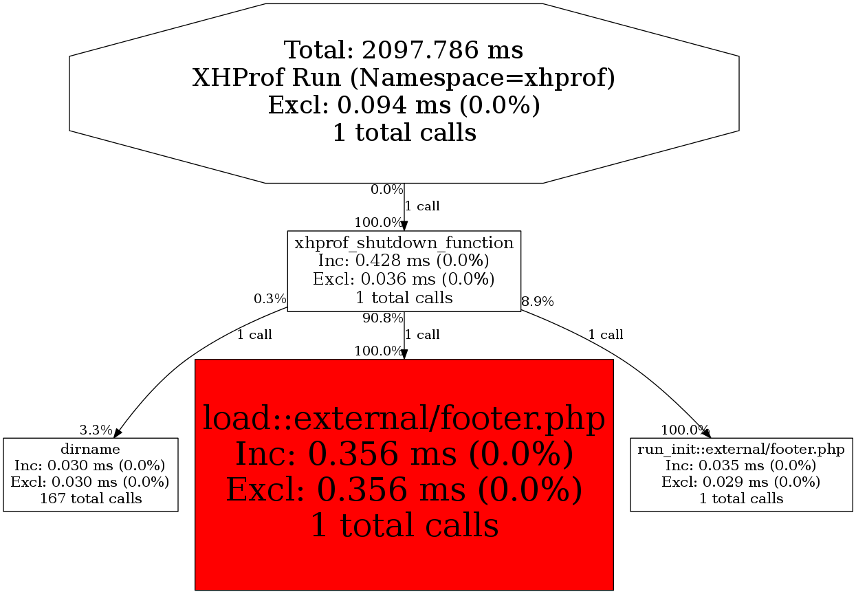 | xhprof_shutdown_function | 1 | 11.1% | 428 | 0.0% | 0 | 0.0% | 14,624 | 0.1% | 0 | 0.0% |
